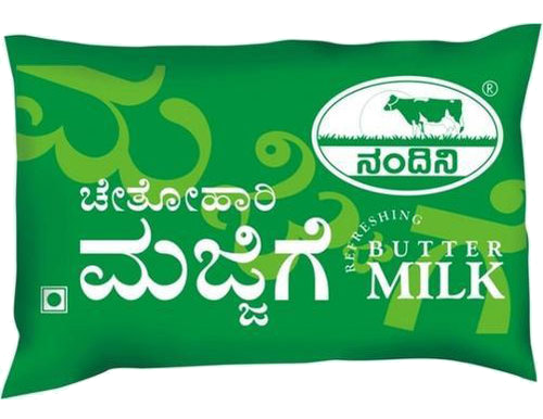 Nandini Spiced Buttermilk is a light and refreshing health drink made from quality curd, blended with fresh green chilies, coriander leaves, and ginger. It aids digestion and is a perfect beverage for all seasons. Each serving provides 60 kcal energy, 4.7 g carbohydrates (including 4.7 g natural sugars), 3.3 g protein, 3.1 g fat, 0.7 g minerals, 124 mg calcium, 275 mg sodium, and 35 µg vitamin A.